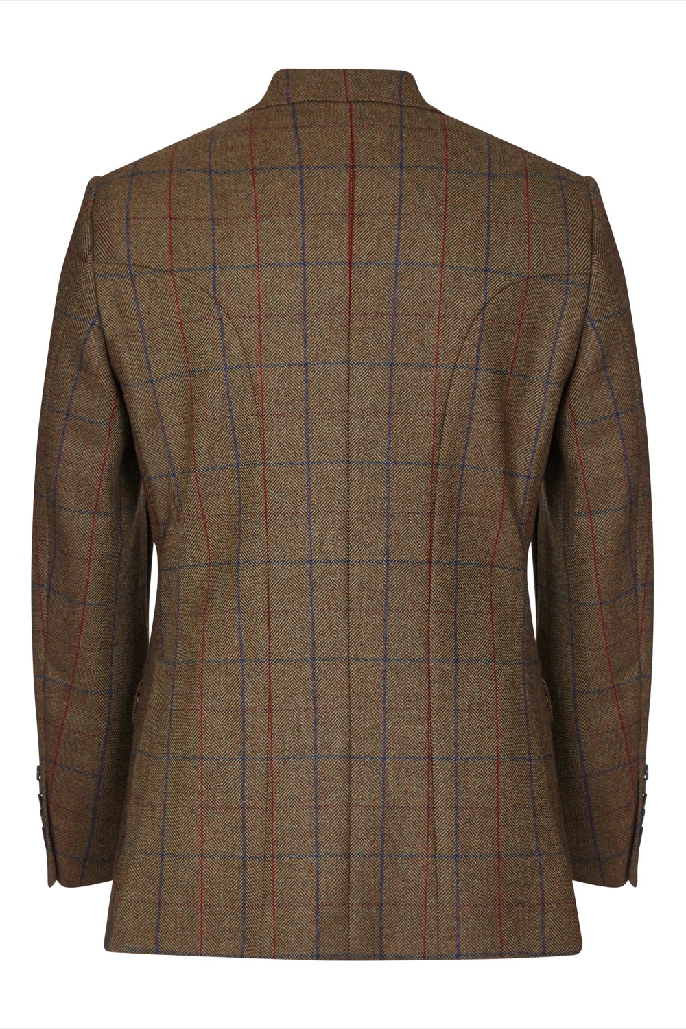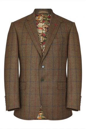 The Badworthy sharply cut sports jacket is the ideal jacket for both your city and country needs. Made using the finest english tweed it will keep you warm, and with the added function of the storm collar, it will keep you shielded from the wind in our changeable climate. The green tweed with blue and red overcheck will blend you into country life but make you look sharp and sophisticated for your trips to town.