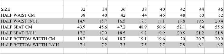 Other Options – Should you require a different inside leg than the options displayed simply click other and leave a comment in the Order notes on checkout.